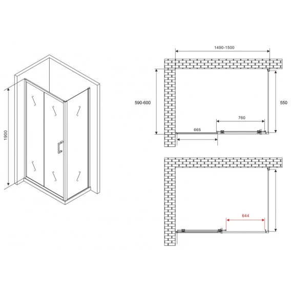 Душевой уголок 150x60 см Abber Schwarzer Diamant AG30150B5-S60B5 прозрачное