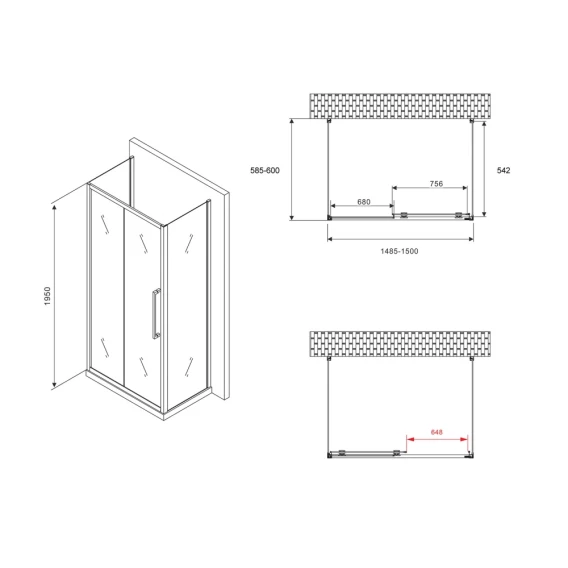 Душевой уголок 150x60 см Abber Schwarzer Diamant AG30150H-S60-S60 прозрачное
