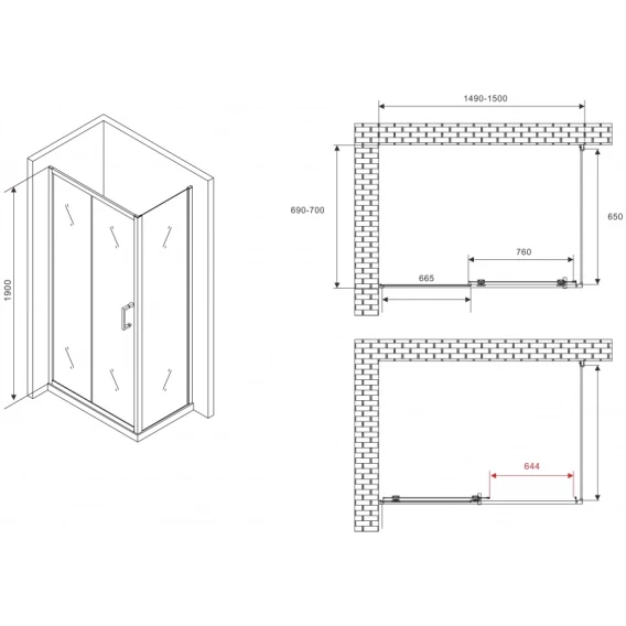 Душевой уголок 150x70 см Abber Schwarzer Diamant AG30150B5-S70B5 прозрачное