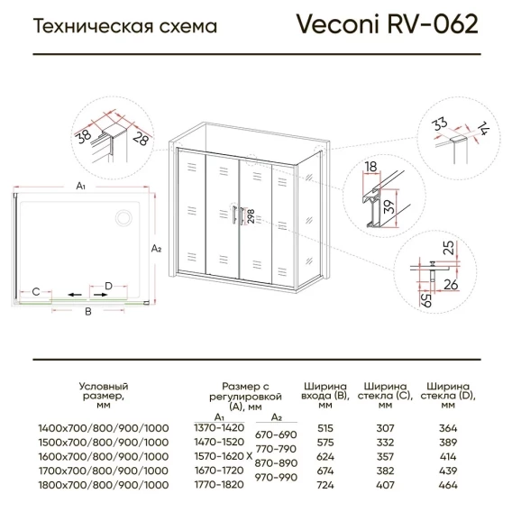 Душевой уголок 150x99 см Veconi Rovigo RV062-150100PR-01-19C3 прозрачное