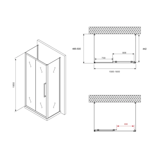 Душевой уголок 160x50 см Abber Schwarzer Diamant AG30160H-S50-S50 прозрачное