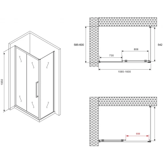 Душевой уголок 160x60 см Abber Schwarzer Diamant AG30160MH-S60M матовое
