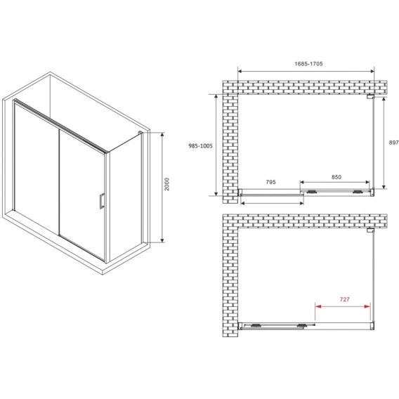 Душевой уголок 170x100 см Abber Komfort AG93170-S102 прозрачное