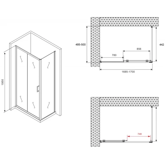 Душевой уголок 170x50 см Abber Schwarzer Diamant AG30170B-S50B-S50B прозрачное