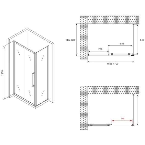 Душевой уголок 170x60 см Abber Schwarzer Diamant AG30170BH-S60B прозрачное