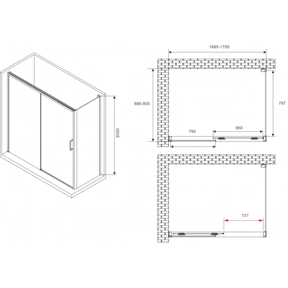 Душевой уголок 170x90 см Abber Komfort AG93170-S92 прозрачное