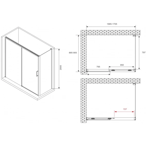 Душевой уголок 170x90 см Abber Komfort AG93170B-S92B прозрачное