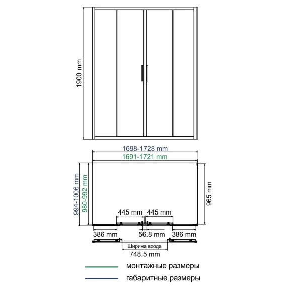 Душевой уголок 170x100 см WasserKRAFT Lippe 45S55 прозрачное