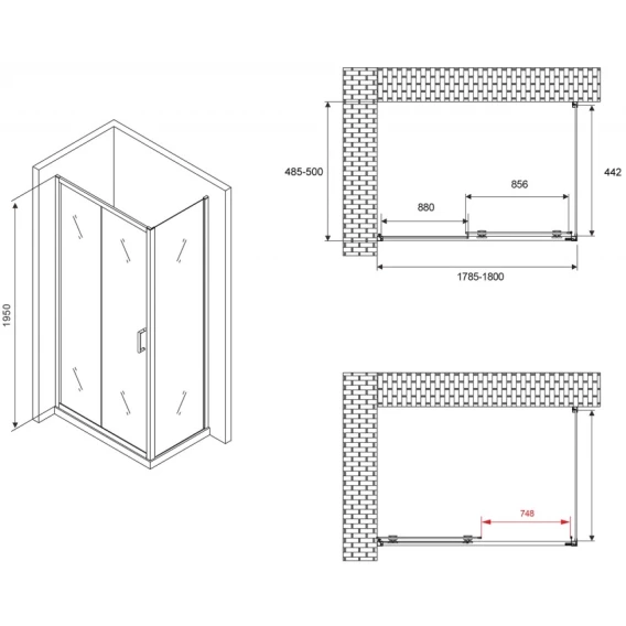 Душевой уголок 180x50 см Abber Schwarzer Diamant AG30180BH-S50B-S50B прозрачное