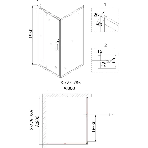 Душевой уголок 78,5x78,5 см Niagara NG-83-8AB-A80B прозрачное