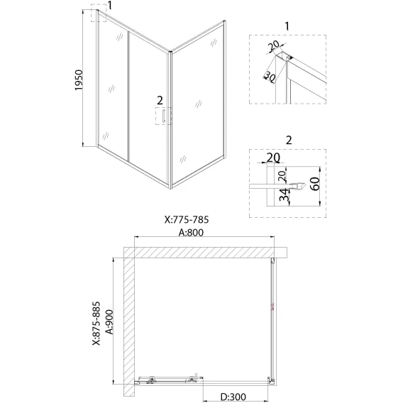 Душевой уголок 78,5x88,5 см Niagara NG-82-8AB-A90B прозрачное