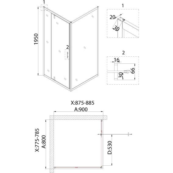 Душевой уголок 78,5x88,5 см Niagara NG-83-8AB-A90B прозрачное