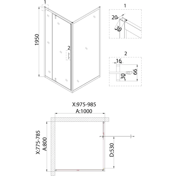 Душевой уголок 78,5x98,5 см Niagara NG-83-8AB-A100B прозрачное
