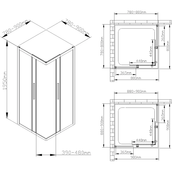 Душевой уголок 78-90x78-90 см Deto KB80 прозрачное с рисунком