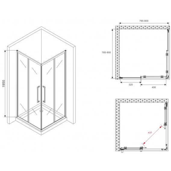 Душевой уголок 80x80 см Abber Schwarzer Diamant AG02080BDTH тонированное