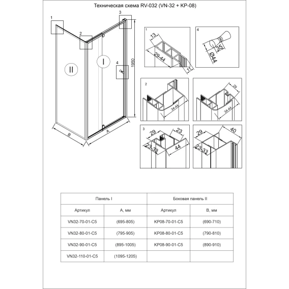 Душевой уголок 88,5-99,5x80 см Veconi Rovigo RV032-9080-01-C5 прозрачное