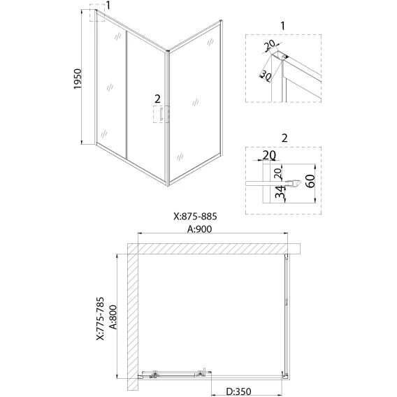 Душевой уголок 78,5x88,5 см Niagara NG-82-8AB-A90B прозрачное