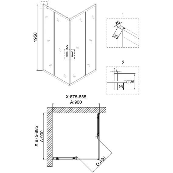 Душевой уголок 88,5x88,5x195 см Niagara NG-6808-08BLACK прозрачное
