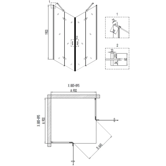 Душевой уголок 90x90 см Abber Schwarzer Diamant AG02090B-S90B прозрачное
