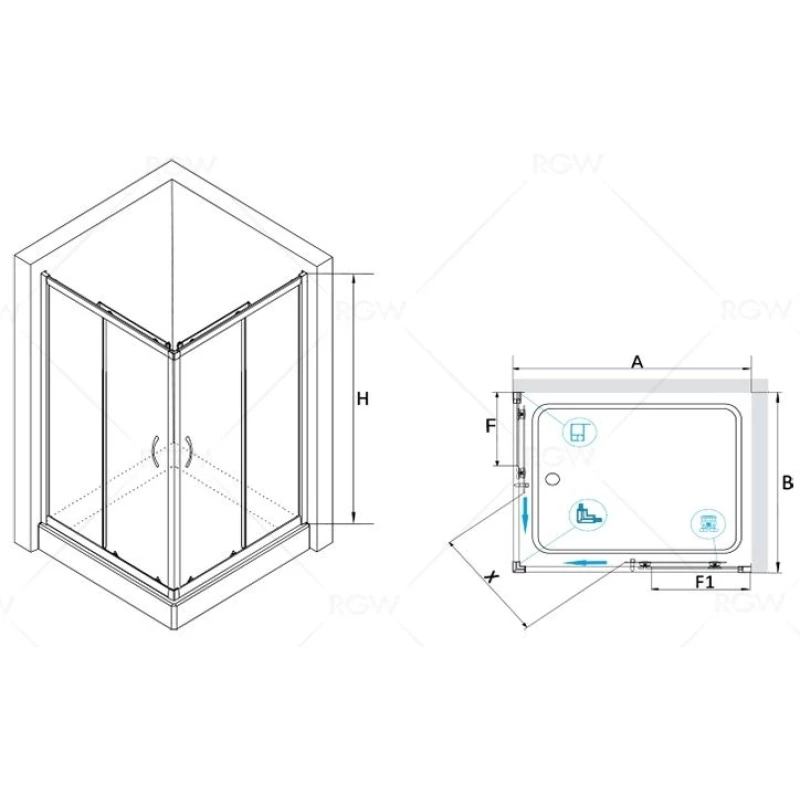 Душевой уголок 89,5x69,5 см RGW PA-146B Passage 020814679-14 прозрачное