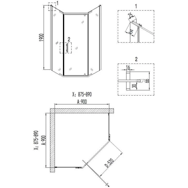 Душевой уголок 89x89 см Niagara NG-6405-08GOLD прозрачное