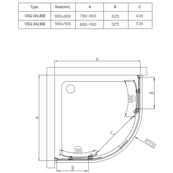 Душевой уголок 90x90 см Vincea Alpha VSQ-3AL900CLB прозрачное