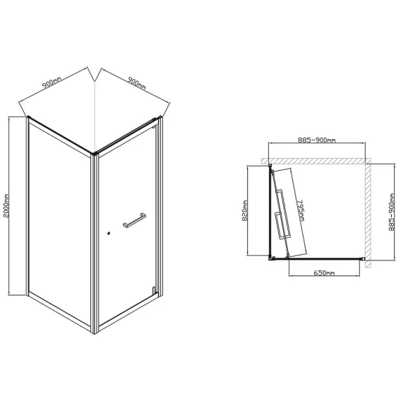 Душевой уголок 90x90 см Vincea Stile VSS-2ST9090CLB-L прозрачное