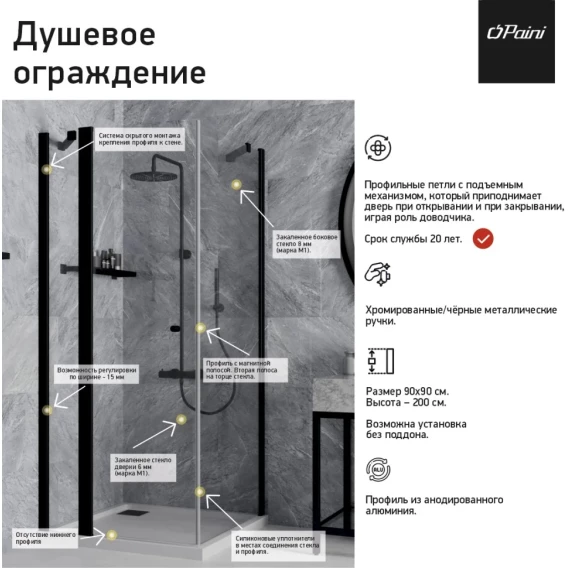 Душевой уголок 90x90 см Paini Cox 78CR9090 прозрачное