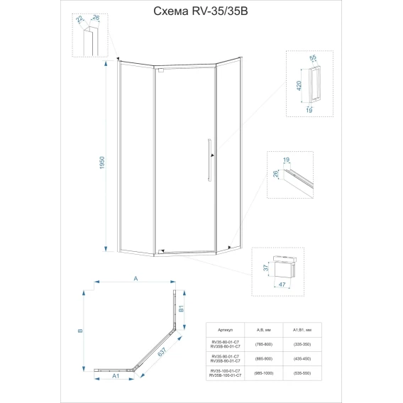 Душевой уголок 90x90 см Veconi Rovigo RV35-90-01-C7 прозрачное
