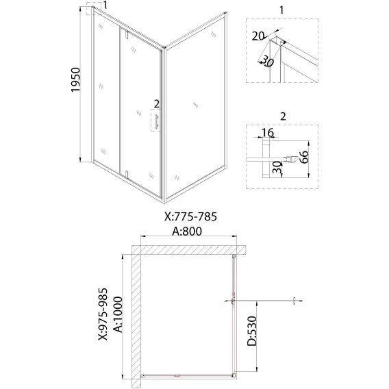 Душевой уголок 98,5x78,5 см Niagara NG-83-10AB-A80B прозрачное