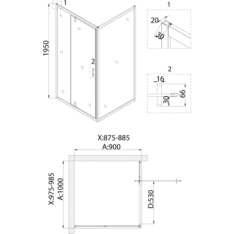 Душевой уголок 100x90 см Niagara NG-42-10AG-A90G прозрачное