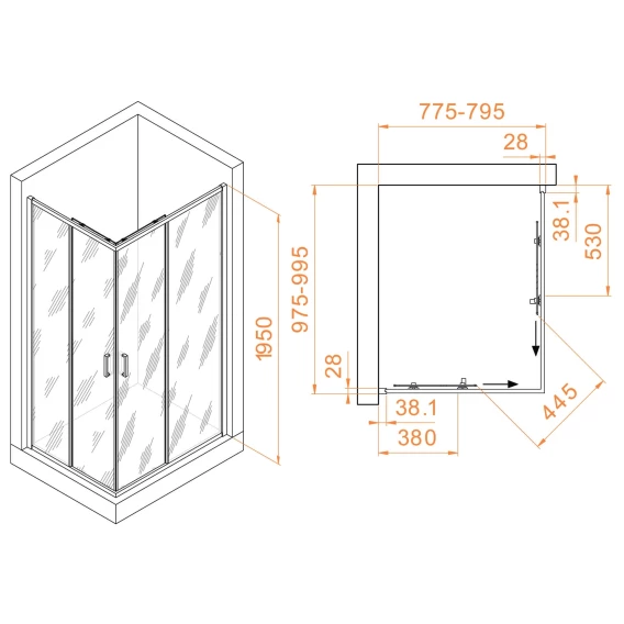 Душевой уголок 99,5x79,5 см RGW PA-246B Passage 030824680-14 прозрачное