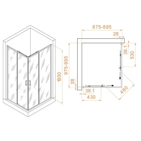 Душевой уголок 99,5x89,5 см RGW PA-246B Passage 030824690-14 прозрачное