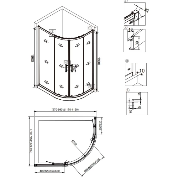 Душевой уголок 99x89 см Veconi Rovigo RV08-10090A-01-19C3 прозрачное