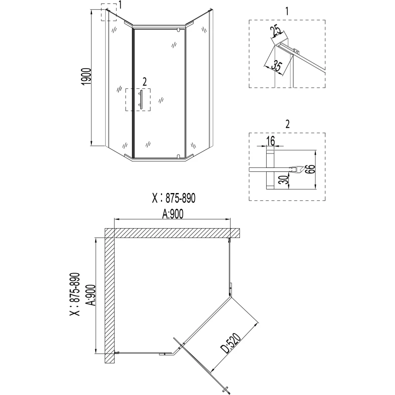 Душевой уголок 99x99 см Niagara NG-6434-08GOLD прозрачное