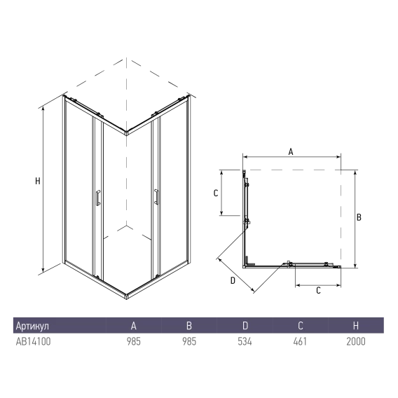 Душевой уголок Alex Baitler AB14100X1 98,5x98,5 см, профиль хром, стекло прозрачное