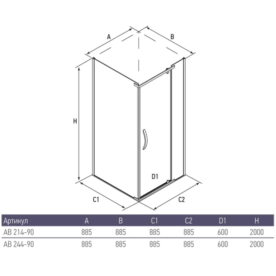 Душевой уголок Alex Baitler AB244-90 88,5x88,5 см, профиль хром, стекло тонированное