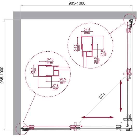 Душевой уголок BelBagno Luce LUCE-A-2-100-C-ORO 100x100 см, профиль золотой, стекло прозрачное