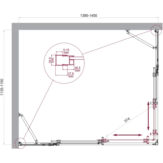 Душевой уголок BelBagno Luce LUCE-AH-22-140/115-C-Cr 140x115 см, профиль хром, стекло прозрачное