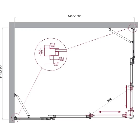 Душевой уголок BelBagno Luce LUCE-AH-22-150/115-C-Cr 150x115 см, профиль хром, стекло прозрачное