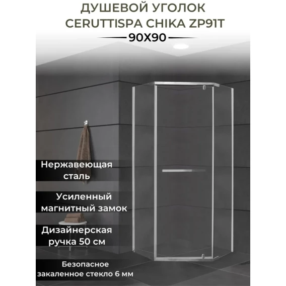 Душевой уголок Ceruttispa Chika ZP91T 87x87 см, профиль хром, стекло прозрачное