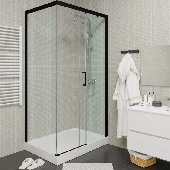 Душевой уголок Ceruttispa Vito 110B-R 108,5x78,5 см R, профиль черный матовый, стекло прозрачное