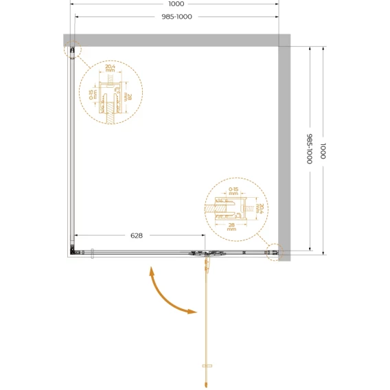Душевой уголок Cezares Liner LINER-A-1-100-C-Cr-R 100x100 см R, профиль хром, стекло прозрачное