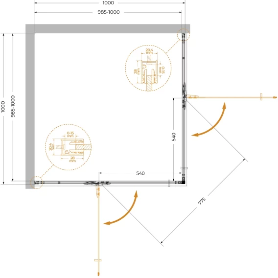 Душевой уголок Cezares Liner LINER-A-2-100-C-Cr 100x100 см, профиль хром, стекло прозрачное