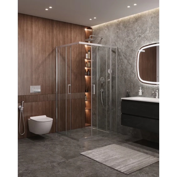 Душевой уголок Cezares Molveno MOLVENO-AH-21-80+20-C-Cr-IV 100x80 см, профиль хром, стекло прозрачное