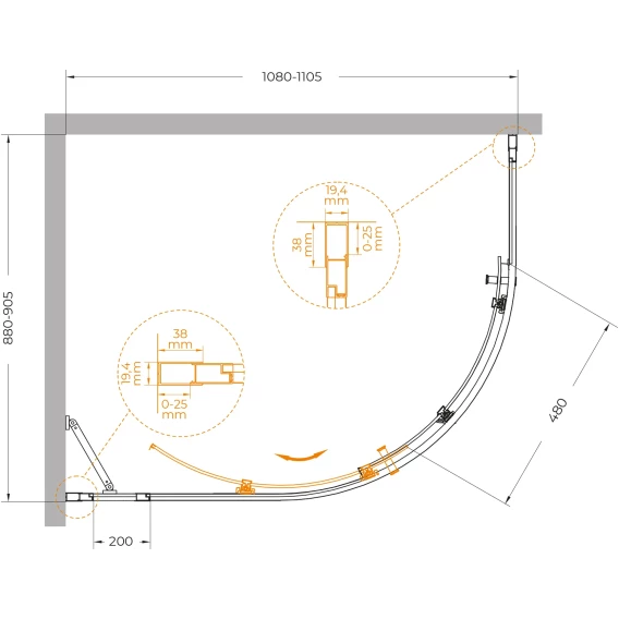 Душевой уголок Cezares Molveno MOLVENO-RH-1-110/90-C-BORO-IV 110x90 см, профиль золотой матовый, стекло прозрачное