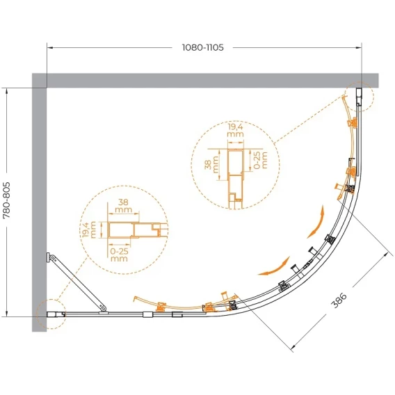 Душевой уголок Cezares Molveno MOLVENO-RH-2-110/80-C-Cr-IV 110x80 см, профиль хром, стекло прозрачное