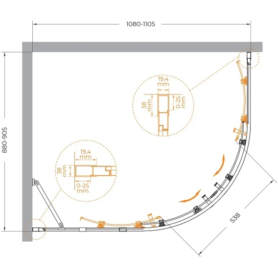 Душевой уголок Cezares Molveno MOLVENO-RH-2-110/90-C-Cr-IV 110x90 см, профиль хром, стекло прозрачное