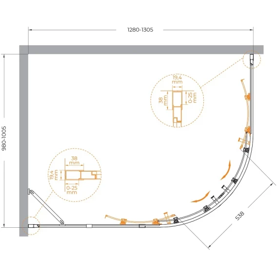Душевой уголок Cezares Molveno MOLVENO-RH-2-130/100-P-Cr 130x100 см, профиль хром, стекло текстурное