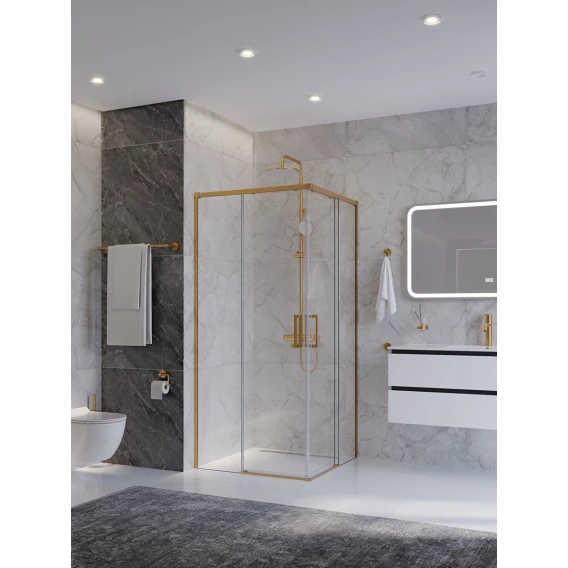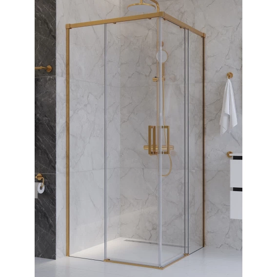 Душевой уголок Cezares Plane PLANE-A-2-100-C-BORO 100x100 см, профиль золотой матовый, стекло прозрачное